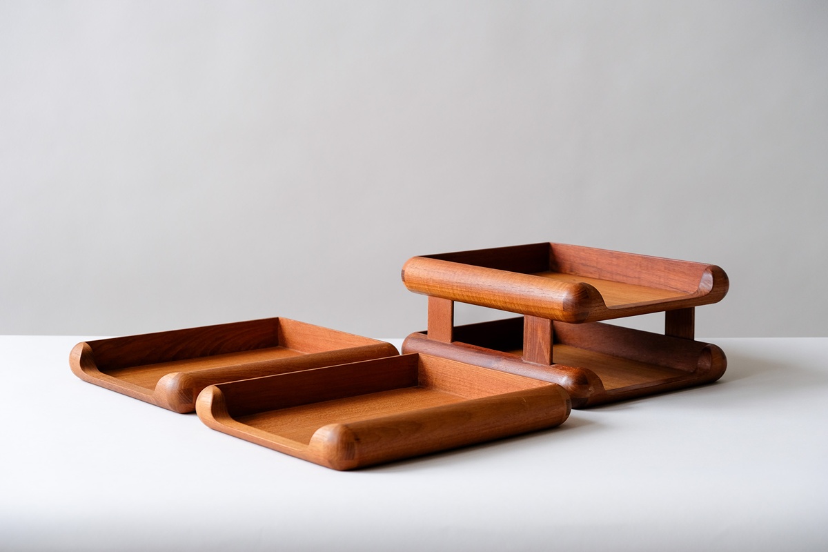 Set of 3. Beautiful mid-century desk trays. Very minor scratches. Dimensions of the large tray are below.